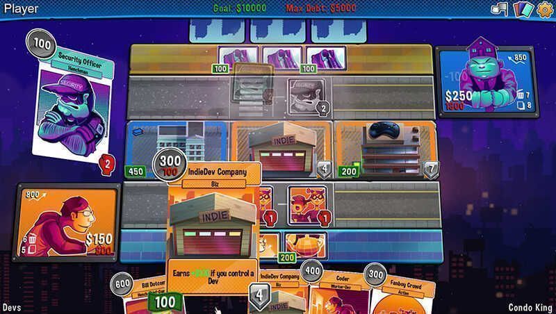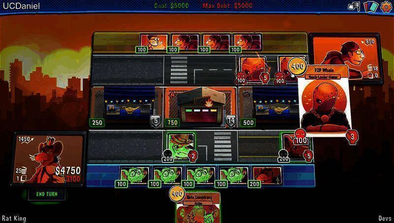 都市卡牌采用甲板建筑玩法,玩家要比对手更快盈利,同时留意自身债务和敌人。这是一款rogue - lite卡牌竞斗游戏,玩家将与鲨鱼人、开发商等多种对手对抗,最后挑战政府。游戏带有讽刺主题,有3个风格各异的派系可供选择。