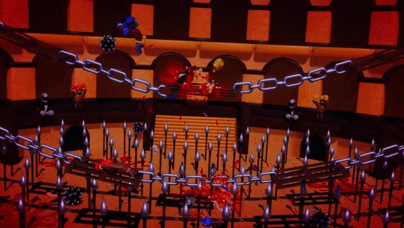 1、标题追逐:镜头聚焦持有头衔的玩家,游戏边缘设有刀片,触碰会导致死亡。
