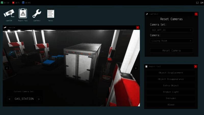修理:摄像机偶尔会损坏,玩家必须进行维修,多次维修后才能查看事件。