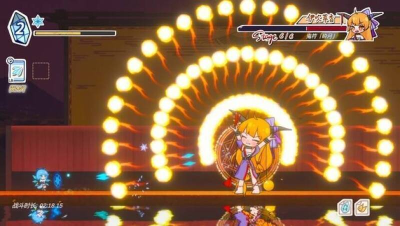游戏巧妙地把横轴动作与弹幕射击玩法结合在一起,玩家操控琪露诺在高机动战斗中,需要灵活地穿梭于弹幕之间。例如在战斗时,玩家既要快速移动以躲避敌人的弹幕攻击,又要找准时机向敌人发起射击。