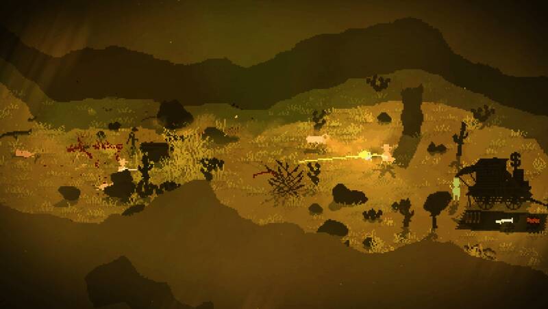采用极简像素风格,贴图设计多样,干草堆、枯树、岩石、栅栏等元素让场景立体生动,还能挡子弹。粒子特效精致,枪口烟火、爆炸火花、喷血等细节使战斗更真实。配乐契合西方风格,战斗时节奏加快,探索时悠扬舒缓,沉浸感强。
