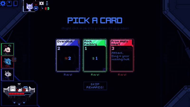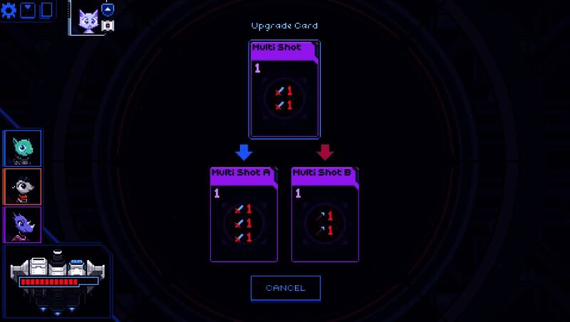 游戏拥有数百张卡牌和多种升级路径,玩家可以自定义卡牌。初始牌组由与玩家选择的三个角色相关的职业牌组成。在游戏过程中,玩家还可以通过击败其他飞船获得额外的卡片,并升级或移除甲板中的卡片,以创建适合自己的强大甲板。