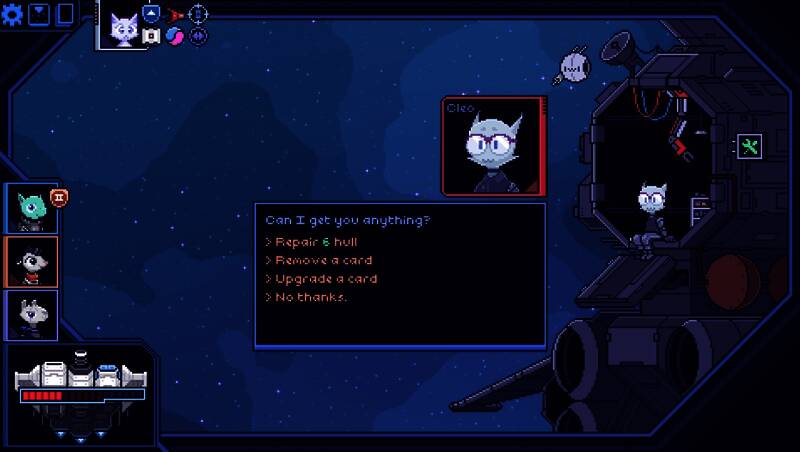 游戏中有八个可选角色,每个角色都有独特的战斗风格和个人故事。玩家可以带三个角色,混合搭配他们的卡牌组。在开始游戏之前,有上百种不同的角色和舰船组合可供选择,不同的组合会带来不同的游戏体验。