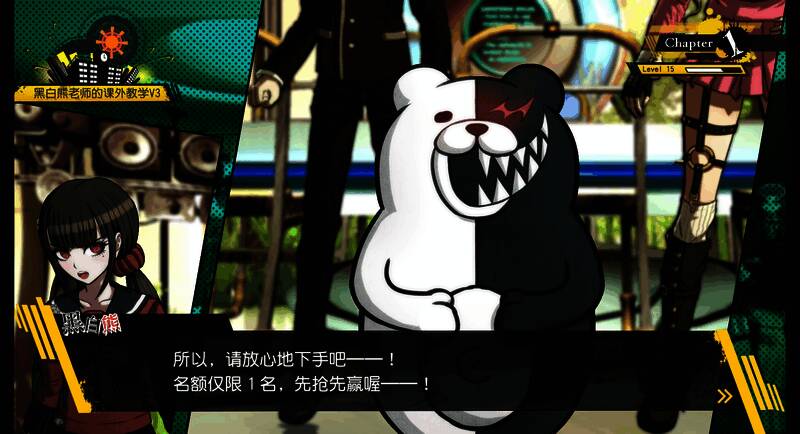 《新弹丸论破V3》电脑版是一款极具魅力的推理冒险游戏。在游戏里,16位拥有超高校级能力的学生被囚禁于“才囚学园”,神秘玩偶黑白熊及其家族成员操控着学园,强迫学生们参与自相残杀的游戏。