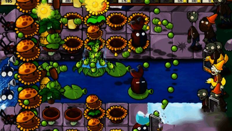 游戏有多个关卡,每个关卡僵尸种类和难度不同,玩家要按需选植物防御。