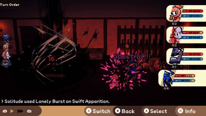 战斗遇敌: 解锁过去人格魅力点,如悔恨(Regret)、善良(Benevolence)和妒忌(Jealousy),组成队伍进行回合制战斗