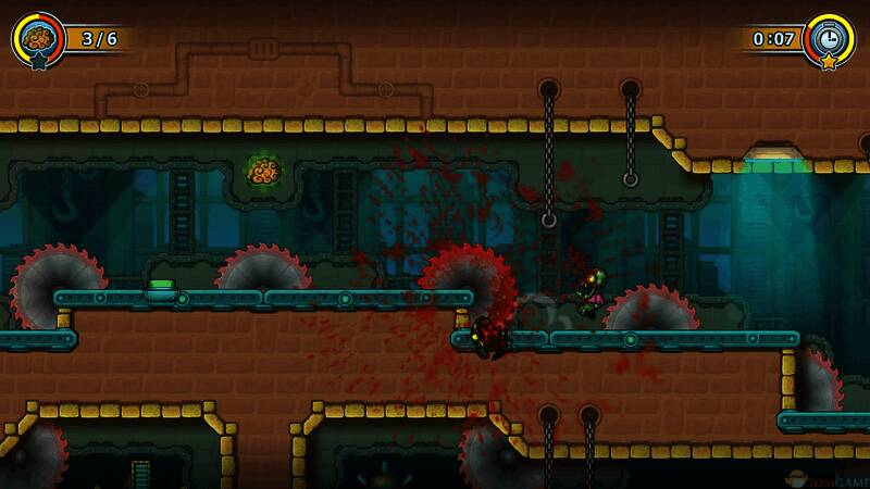 游戏中有四个僵尸,初始仅一个,随难度增加逐步解锁,每个都有独特技能。绿色僵尸跳跃能力强,是前进主力;蓝色僵尸能吸附墙壁,适合爬高;黄色僵尸可飞行,鼠标左键释放尾气飞行;紫色僵尸最懒,能睡觉停下,而其他僵尸会不断行走。