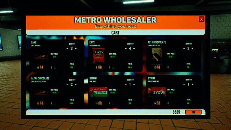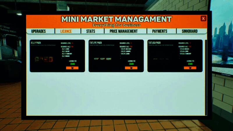 游戏开始时,你仅有一个货架、几种基本产品和一台收银机。但随着时间推进,你能通过增加销售额,用赚来的钱购买新的产品许可证和各种设备来拓展业务。