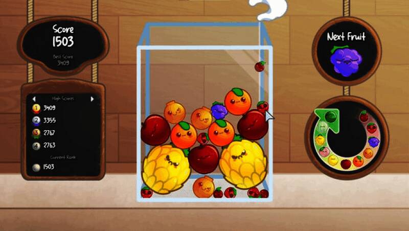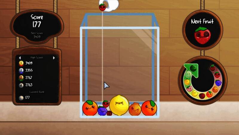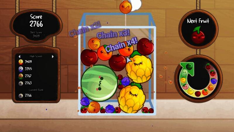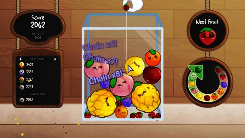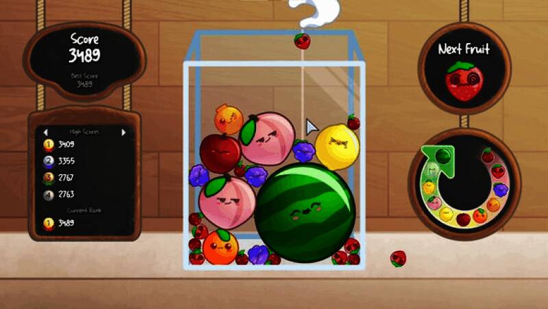 在这个休闲益智游戏中,将弹跳水果投进容器,相同水果相遇会合并升级。你可以尽情享受投放乐趣,挑战更高分数。