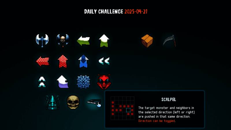 鬼斧神通(Axe Ghost)是由Tomasz Kaye制作并发行的策略游戏。这是一款空间回合制战斗游戏,玩家要把地图上的怪物巧妙地推动拖拉,再将它们一举击溃。还能进行每日挑战,直面可憎的魔王伽尼玛尔。