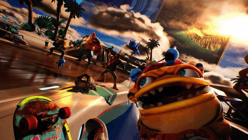 新增核心玩法“滑板”(SKATEBOARD),玩家脚踏滑板可在场景中高速滑行,能踢翻外星警察、碾过障碍物,实现动态位移与战斗的完美结合。