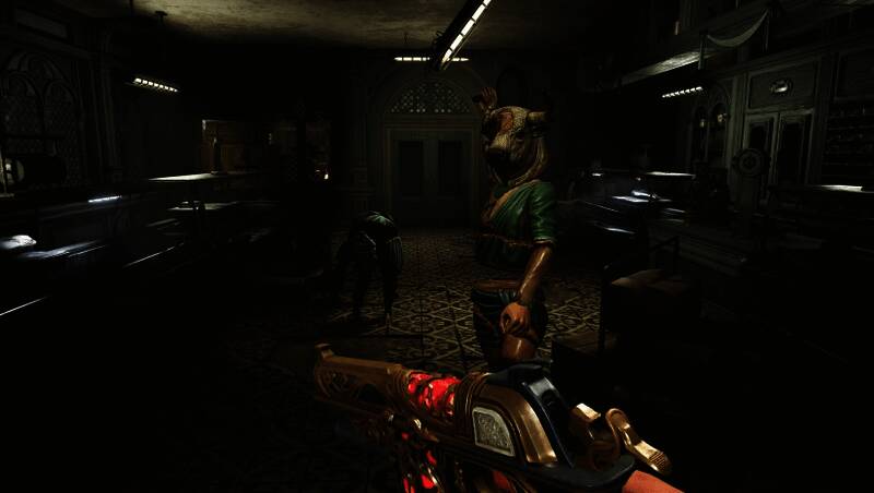 游戏在画面表现上极具特色,场景设计融合寂寥海岸线、哥特式废墟与血肉扭曲的异化神殿,细节之处如摇曳烛光下的血渍、蠕动墙体等强化了不可名状的恐怖氛围。