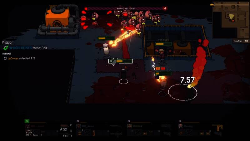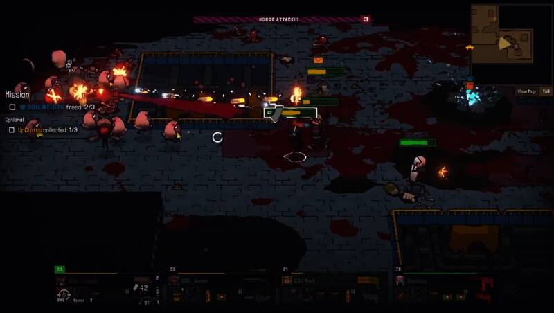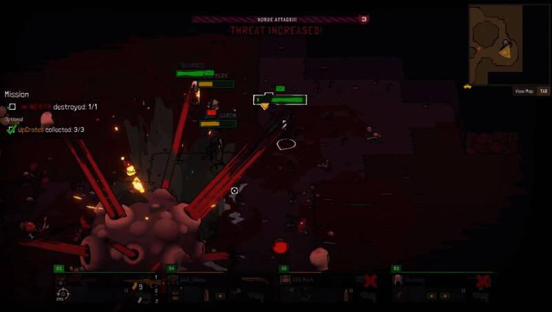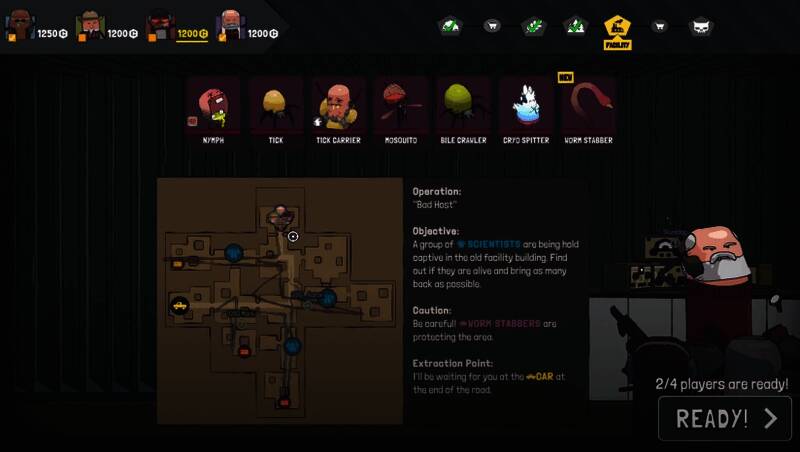游戏采用Roguelike成长机制,任务间歇期间,玩家需共同投票决定敌人的突变方向(如增强防御或释放毒液),同时为自己选择短期增益或长期升级,平衡风险与收益。