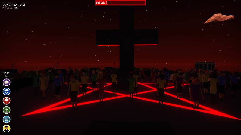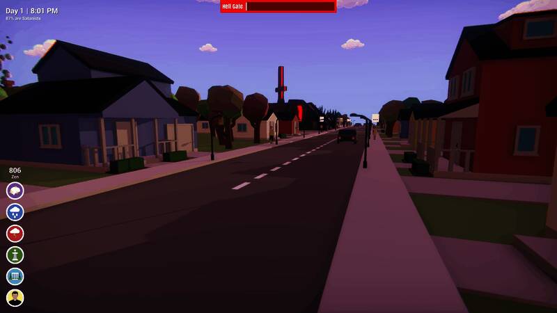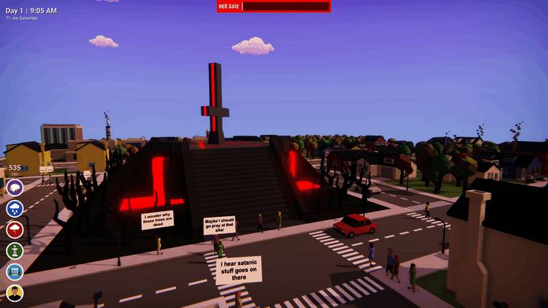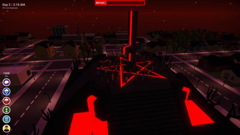 城市处于平衡的微妙状态,玩家必须有所作为。这是一款无情的城市模拟/战略游戏,要监视并防止居民向撒旦祈祷,避免末日降临。玩家会感受到前所未有的烦恼,因为维持城市的运转可能需要付出巨大努力。要监控公民腐败迹象,减轻腐败损害,召唤神圣力量阻止撒旦的影响,招募公民协助斗争,每天为黑色弥撒做准备。游戏拥有成熟的人工生命系统,公民有各自的生活和秘密,还有完整的昼夜循环,玩家要在白天留意公民习惯,警惕晚上外出的人。