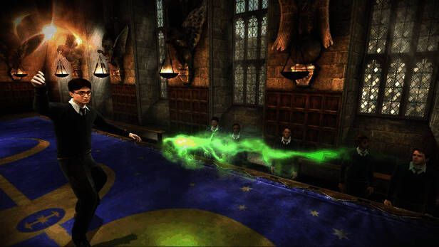 施法方式和前作一样,玩家需精准移动魔杖对准物品施咒,并自行抉择施放何种咒语,增强了游戏真实感。非攻击咒语有恢复如初(Reparo)、羽加迪姆 勒维奥萨(Wingardium Leviosa)、火焰熊熊(Incendio);攻击咒语有除你武器(Expelliarmus)、昏昏倒地(Stupefy)、盔甲护身(Protego)、统统石化(Petrificus Totalus)、倒倒吊(Levicorpus)。