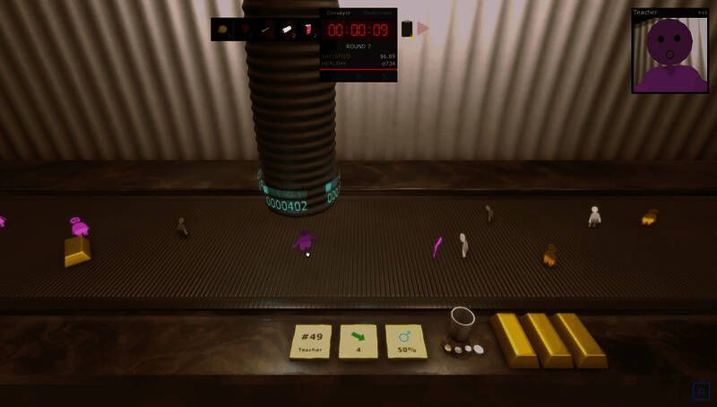 当你想从常规的传送带操作中转换一下,还可以切换到3个实验迷你游戏之一。做实验需要用到纸上的人,所以在传送带上收集足够的物品很有必要。