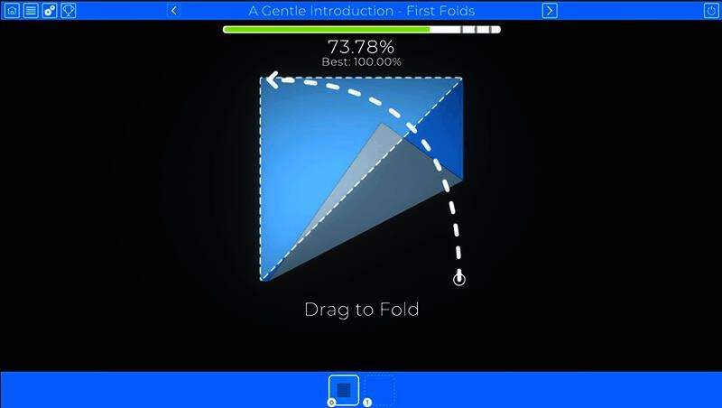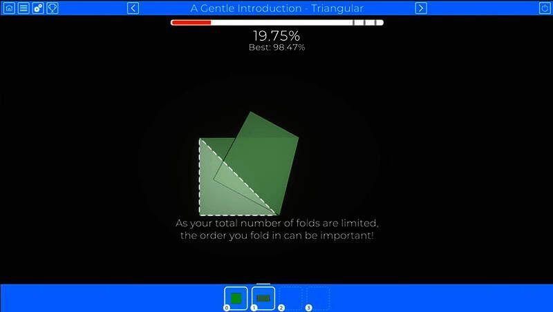 游戏共有66个关卡,按主题分组,后续难度逐步提升。每个关卡以正方形纸张和剪影起始,无计时器,但有折叠次数限制。步骤记录在屏幕底部,可自由回溯操作,体验流畅。