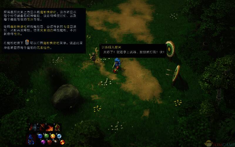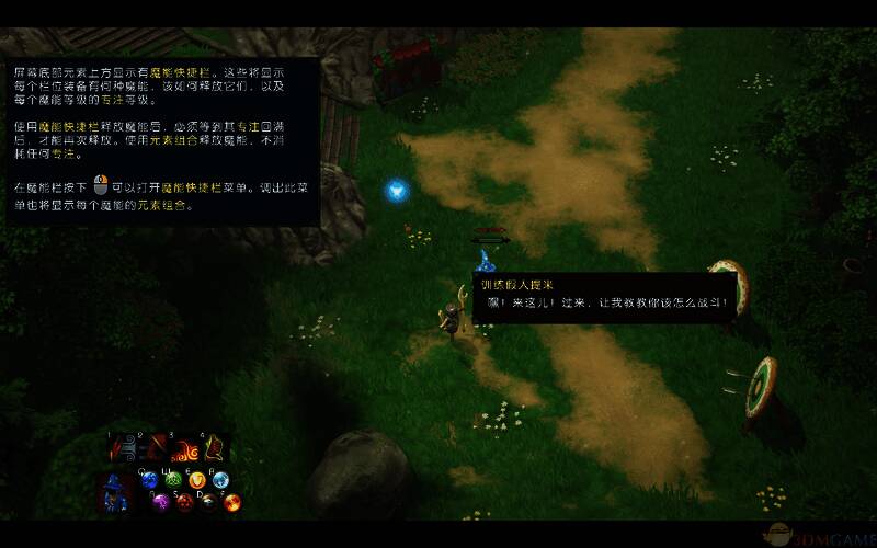 游戏中会出现各种魔法书,捡取后即学会相应技能,可通过ESC键呼出系统菜单,选择Magicks选项查看已学技能。魔法书记录着强力魔法,合理运用可无敌。魔法释放需顺次组合元素,按空格施法,如复活术Revive是生命元素(W)+闪电元素(A);目标选择靠鼠标指引,如魅惑术Charm要将鼠标指针放目标单位上才能释放。