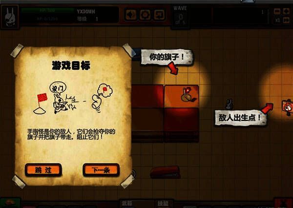 《兔子旗飘扬2(Bunny Flags 2)》是一款策略性十足的防守射击小游戏。玩家操控枪法精准的兔子,抵御手指怪物对火柴旗的袭击。面对众多敌人,仅靠个人射击远远不够,游戏融入大量塔防建设元素。初期可设置路障延缓敌人,随着关卡推进,能解锁多种具攻击力的建筑,合理利用是通关关键。杀敌获利润后可升级武器、购买道具。