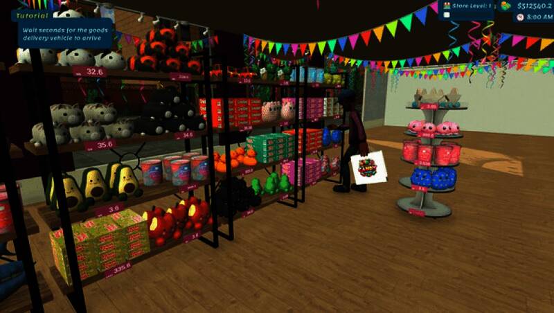 将玩具和糖果、蛋糕分别放在不同货架,用游戏内电脑订购库存。送货后 unpack 货物,合理组织存储室,把货物安排到店内相应区域。
