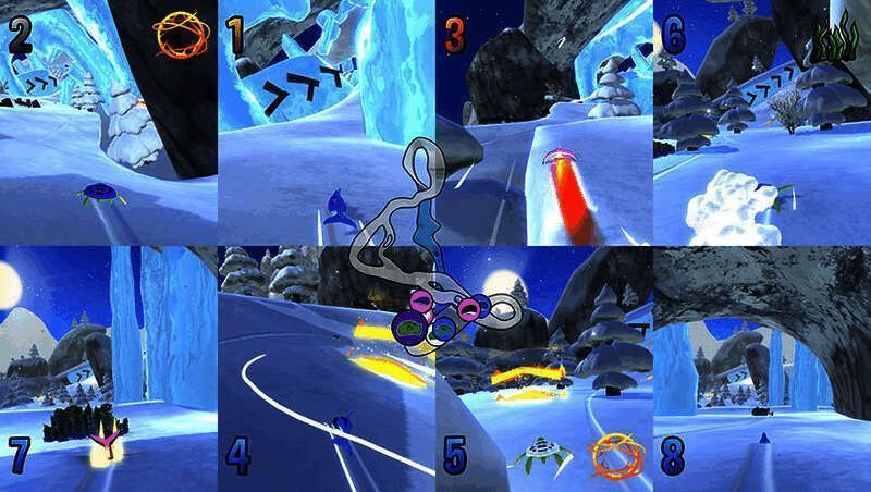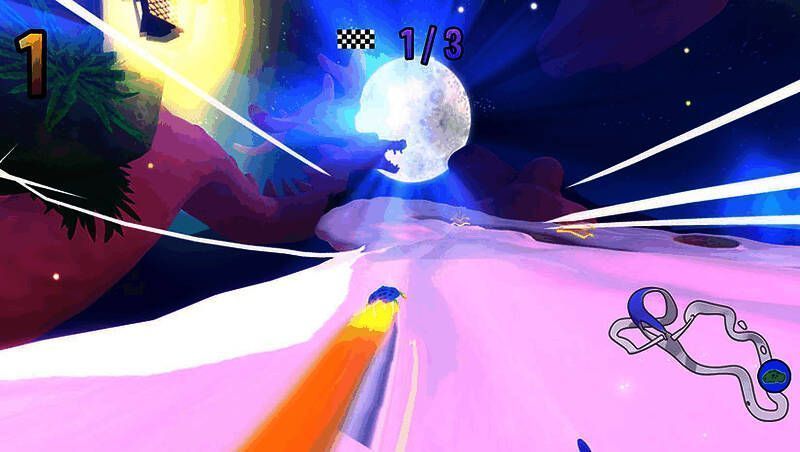 赛道处于如梦如幻的世界,周边风景美不胜收,有极光环绕的云朵、白雪皑皑的山脉,还有充满热带或凯尔特风情的土地……有些赛道上下颠倒,有些则轻松舒缓。所有关卡都藏着隐蔽的捷径,若能发现,就能赢得宝贵的几秒优势。