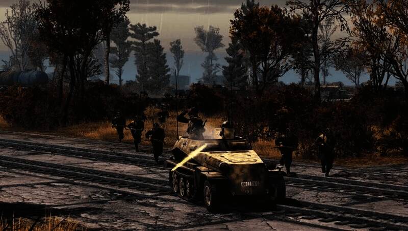 玩家可以轻松地在第一人称和第三人称视角之间瞬间切换,涵盖车辆的第一人称镜头视角、车辆和步兵的第三人称视角,以及经典的RTS自上而下视角。