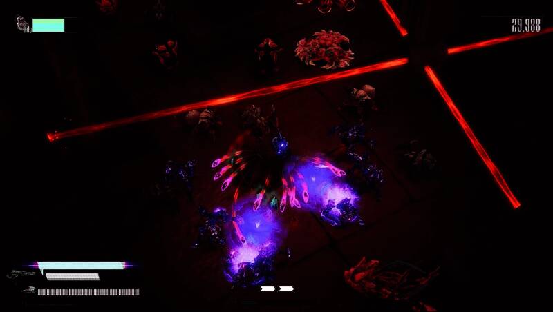 游戏采用简单装饰的艺术风格与复古画面,向 90 年代沉浸在霓虹氛围中的街机和射击游戏致敬。其低像素野兽主义的建筑风格,让玩家在五个手工设计、要求严苛且极度诡异吓人的竞技场中翻滚冒险时,也能欣赏到周围恐怖虚幻的景色。