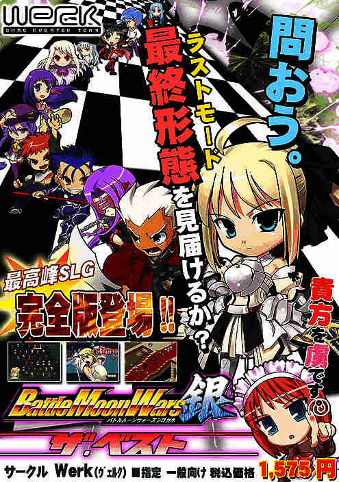 这是由游戏厂商Werk制作,于2010年5月14日发行在PC平台的一款S.RPG游戏,由SOS团·POPGO超☆总支部宝马计划汉化。它是Werk开发的TYPE - MOON游戏的二次创作作品,面向全年龄玩家,人物涵盖《空之境界》《月姬》《Fate/stay night》《Fate/hollowtaraxia》等,游戏系统沿袭机器人大战,有「合体攻击」「援护」「战斗示威」等。
