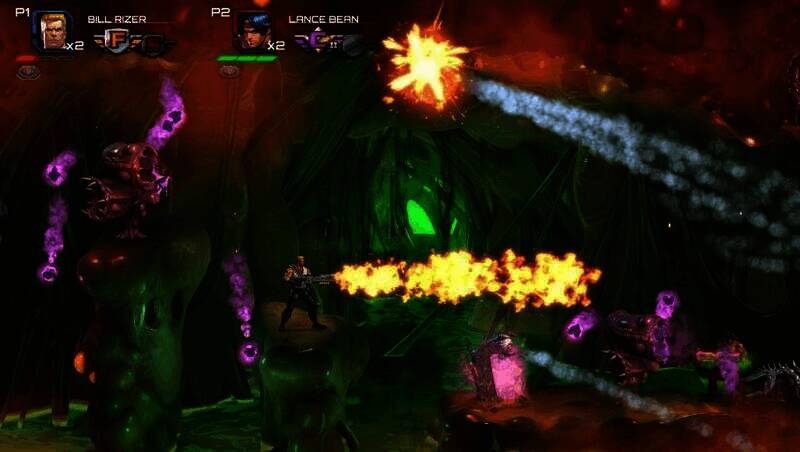 游戏支持单人、双人以及最多四人合作。除了经典角色比尔和兰斯之外,还新增了几个各具独特技能的角色。