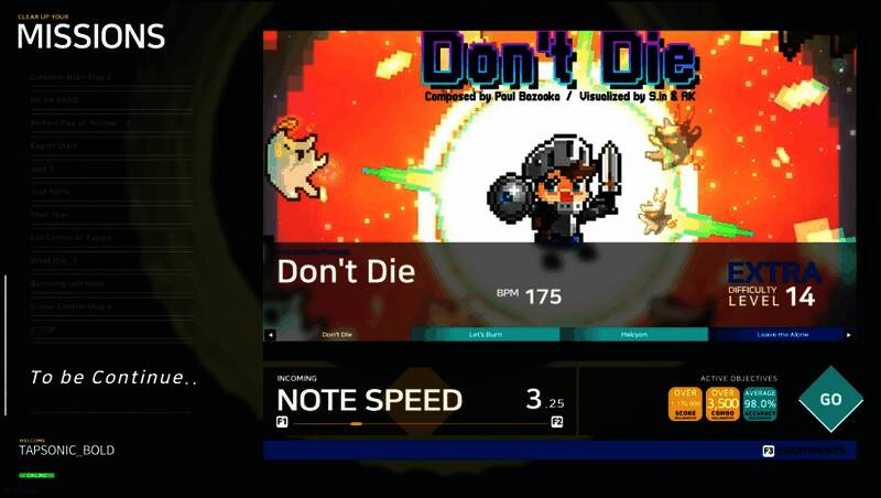 该游戏收录了更多特殊曲目,画面炫酷且富有节奏感,有单人多曲目混合模式,还能自定义轨道数目与难度。