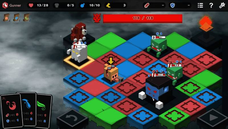 战斗模式:游戏采用回合制战斗,为英雄规划行动路线,其会在前进时自动操控关卡地面的3种元素攻击怪物。