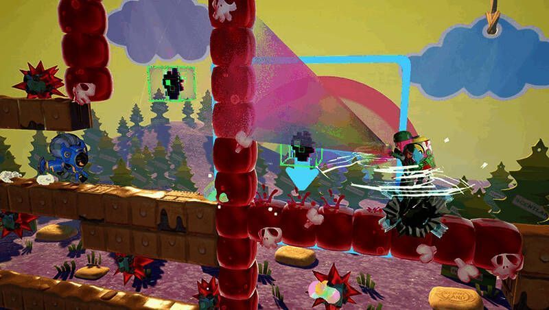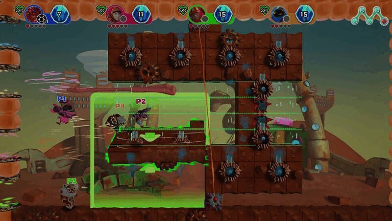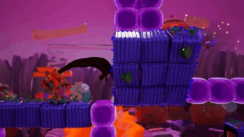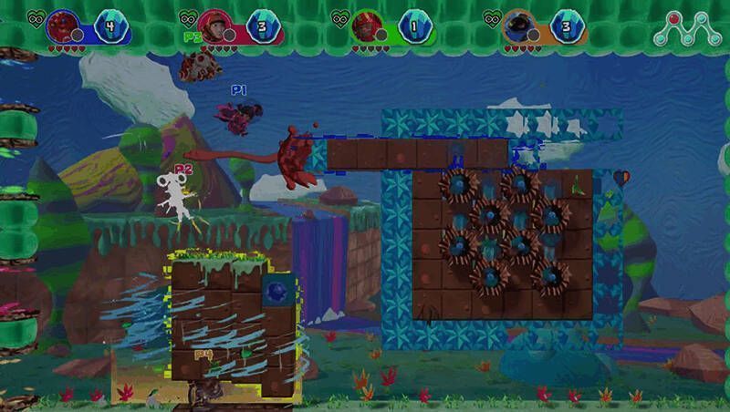 玩家能准确偷取敌人或自己脚下的地块。可以旋转墙壁、扭曲通道、粉碎敌人,将地面作为工具或武器,在快节奏地面爆破战中击败对手。