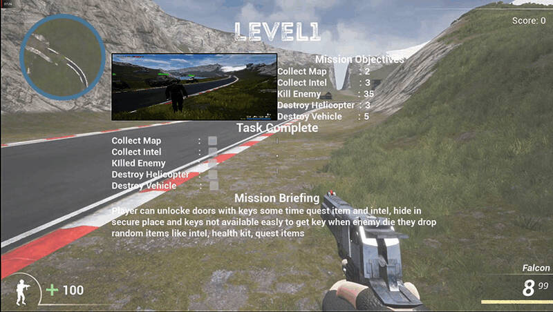 玩家会被空降在游戏场景,需消灭关卡地图内每个敌人营地的敌人。游戏有五个不同关卡,完成一关会自动开启新地图。