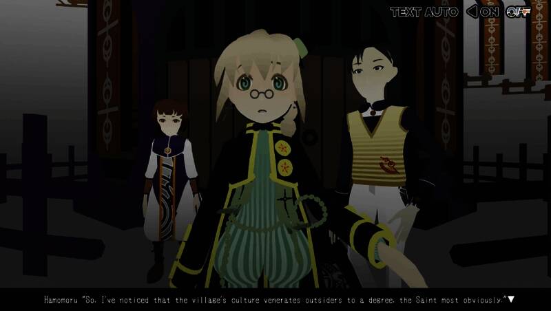 与村民接触后,橙鸠守发现他们对“圣人”存在异常信仰。村民将外来者视为“稀人”,尤其崇拜先到村中的红之少女。善良的橙鸠守想助村民团结,却因白之少女突然造访而中断。
