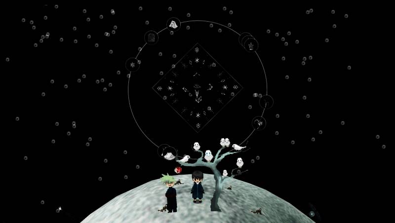 构建2.5D世界,融合3D球体模型与像素艺术风格。