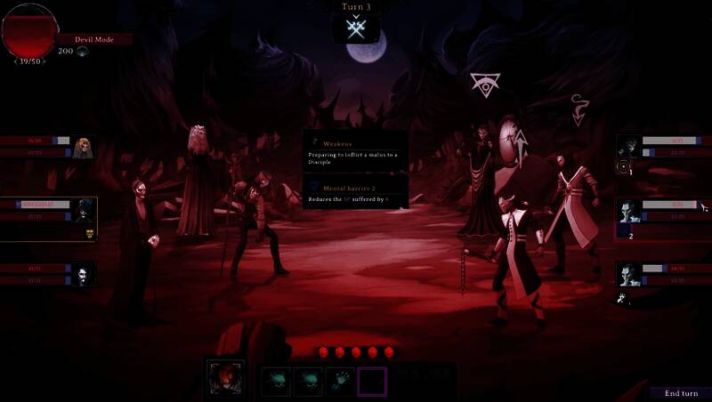 玩家要探索3D地图,在与其他角色的互动中制造混乱。带领邪恶队友投入回合制战斗,运用技能击败敌人。一旦失败,所有角色进度清零,需重新开始。玩家得谨慎抉择,还能召唤恶魔特殊力量或在界面作弊扭转战局。