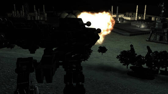 游戏画面:借助XBOX360强大机能,呈现720P高清画面,全场景反锯齿处理让画面更圆润。爆炸和烟雾效果出色,机体金属感强,能体现走路带起的泥沙。不过击毁建筑物和坦克时,物体是随浓烟沉入地下而非粉碎倒塌。
