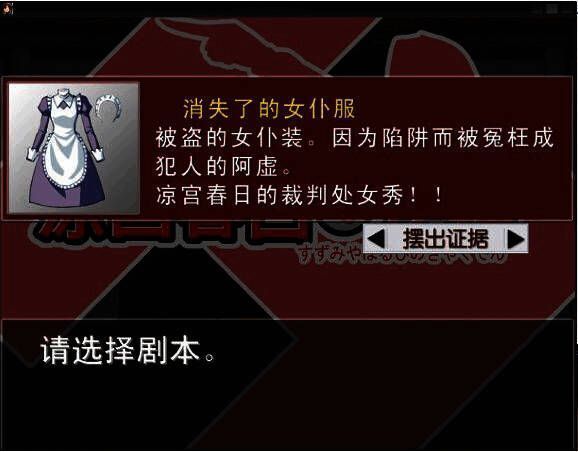 这款凉宫春日的逆转是C72的同人游戏,改编自经典动画《凉宫春日的忧郁》,人设和原作有差异,游戏系统和名称源自著名AVG游戏逆转裁判。游戏围绕凉宫春日熟悉的角色展开三起案件,玩家要扮演不同角色,在侦探模式找证据,在法庭用证据揪出真凶,游戏系统和逆转裁判基本一样。