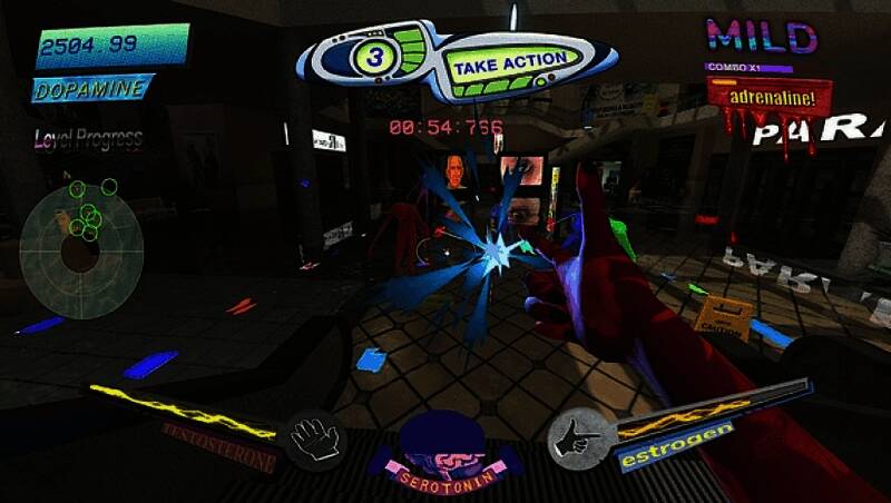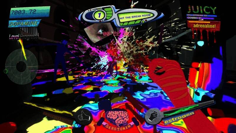 - 射击、拍打,穿越敌人浪潮,在混乱和彩色液体中穿梭。