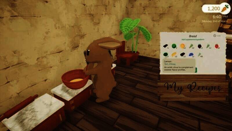 玩家要在田间种植小麦,前往森林采集鸡蛋,到洞穴中获取盐等制作面包所需的材料。利用店内厨房的各种设备,将材料加工成面团并进行烘烤,不仅可以创造出不同造型的面包,还能逐步解锁馅饼、饼干等多种食谱。