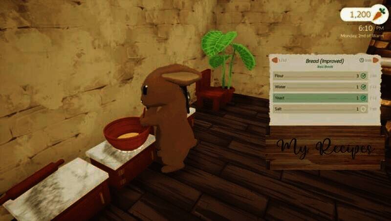 兔子的各种动作,如种植、采集、烘焙等都表现得流畅自然,制作面包时的揉面、烘烤等特效也非常细腻,增强了游戏的真实感和趣味性。