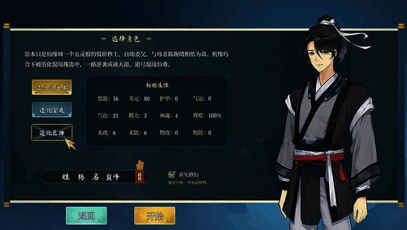 自天地初开,混沌之中诞生了宇宙,世间也随之出现了几件神秘的造化至宝。这些至宝与天地共生,蕴含着天地的造化之力和日月的玄机奥秘,拥有独立的灵智,且不死不灭。那些有幸拥有造化至宝的修士,只要顺利成长,必定能称霸一方界域,成为令人敬仰的无上强者。当至宝的主人陨落,它们便会漂泊于茫茫宇宙,寻觅下一位有缘人。玩家扮演的有缘人,无论出身贫富,都会在造化至宝的因果牵引下,踏上一场惊心动魄的修仙之旅。在尔虞我诈的修真世界中,玩家将经历亲情、友情、爱情的考验,与不同阵营的修仙者交锋,甚至有可能改变整个世界的走向。