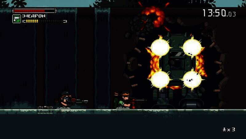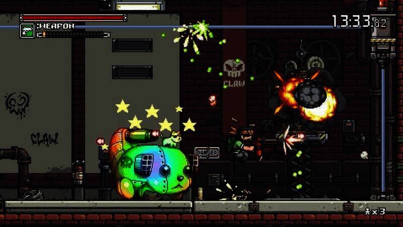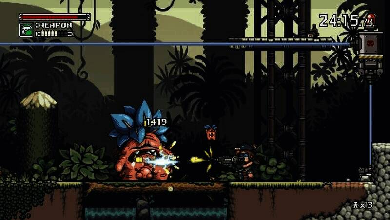 游戏的战斗系统和《合金弹头》类似,玩家需要凭借各类武器装备去击败敌人。并且游戏融入了RPG元素,玩家在关卡推进过程中可以收集零件和材料,用来合成不同的武器和配件,这为玩家提供了极为丰富的定制选择。