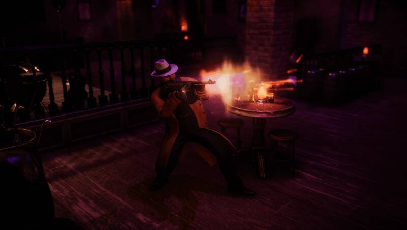 游戏采用俯视角2.5D画面,搭配复古爵士乐与细致还原的芝加哥建筑风貌,成功营造出浓厚的时代氛围。战斗中的枪械特效与掩体破坏效果表现突出,但角色建模精度略显一般。亚洲版本因审查要求,对内脏断面与性暗示内容进行了适度调整,核心玩法未受影响。