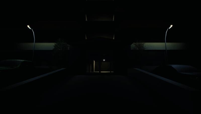 音效与光影设计是本作的核心恐怖要素之一。滴水声、脚步声等环境音效与动态灯光变化相互配合,极大提升了玩家的代入感。官方强烈建议佩戴耳机进行游戏,以便捕捉每一个令人不安的细节。此外,画面采用写实风格,展现出剥落的墙漆、锈蚀的电梯以及昏黄的走廊灯光,构建出一种压抑而真实的氛围。