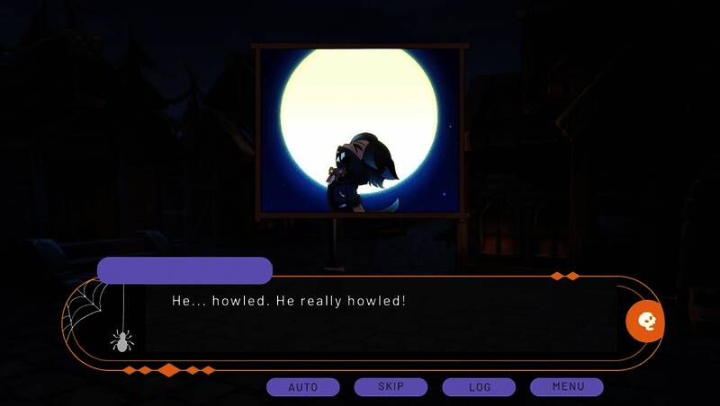 本作采用明亮鲜艳的2D卡通风格,完美契合万圣节主题。角色立绘细节丰富,生动呈现各族特色(如狼人的毛绒耳朵、吸血鬼的苍白皮肤等)。场景布置融入魔法学院与节日装饰元素,界面简洁直观,动态特效如施法光效进一步增强沉浸体验。游戏全程支持英语配音与字幕,便于全球玩家理解剧情。