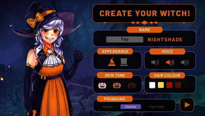 故事发生在一所奇幻的魔法校园中,玩家将化身年轻的女巫Fay Nightshade。在万圣节前的七天里,她不仅要面对期末考试的压力,还必须在这场节日庆典中找到合适的约会对象。游戏通过时间管理机制,让玩家在学业与情感之间做出选择,每一步都可能影响最终结局。