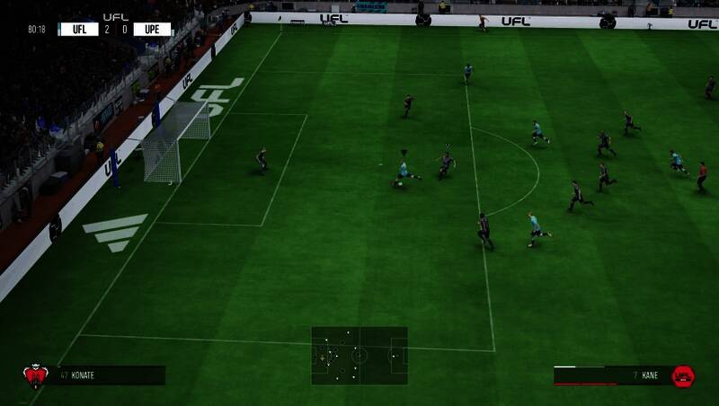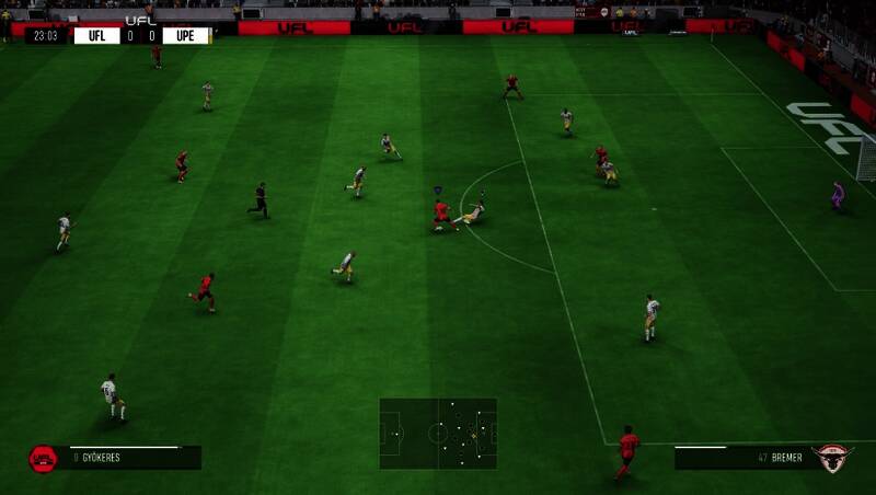 为了增强战术深度,《UFL》配备了智能战术板功能。玩家可以自由拖动球员热区来设定跑位路线,系统AI则会实时分析对手的比赛习惯,例如偏好左路突破等。在中场休息时,玩家可根据分析结果针对性地调整战术安排,实现更具战略性的比赛控制。