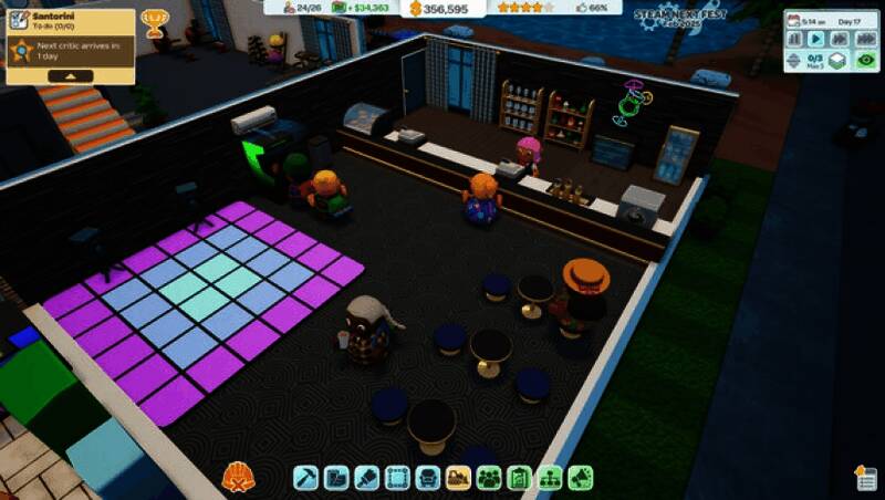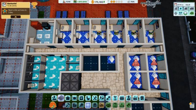 建造过程完全实时进行,因此必须精心规划。例如,不能随意移除客人正在使用的设施,否则可能引发差评。这种高度还原现实的设计让玩家感受到真正的经营压力与乐趣。