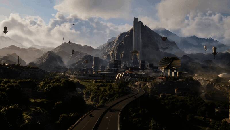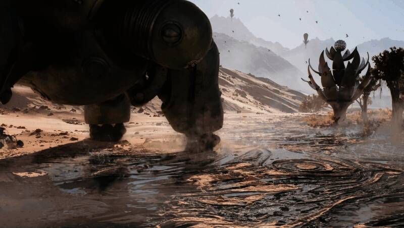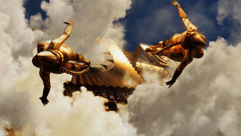 场景设计涵盖雪原、浮空城市等多种生物群系,风格迥异且充满沉浸感。经典元素如“双生舞伶”机器人也以更高精度重现,带来更强的视觉冲击。